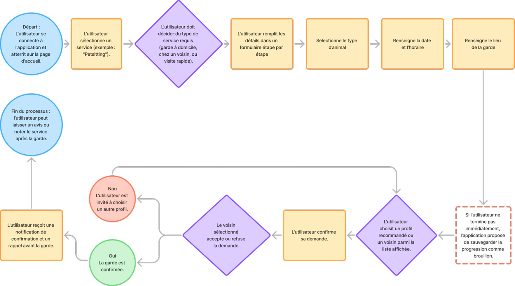 À partir de ces enseignements, j’ai conçu un parcours utilisateur optimisé, accompagné de wireframes fonctionnels que j’ai soumis à des tests pour évaluer leur clarté et leur valeur ajoutée.