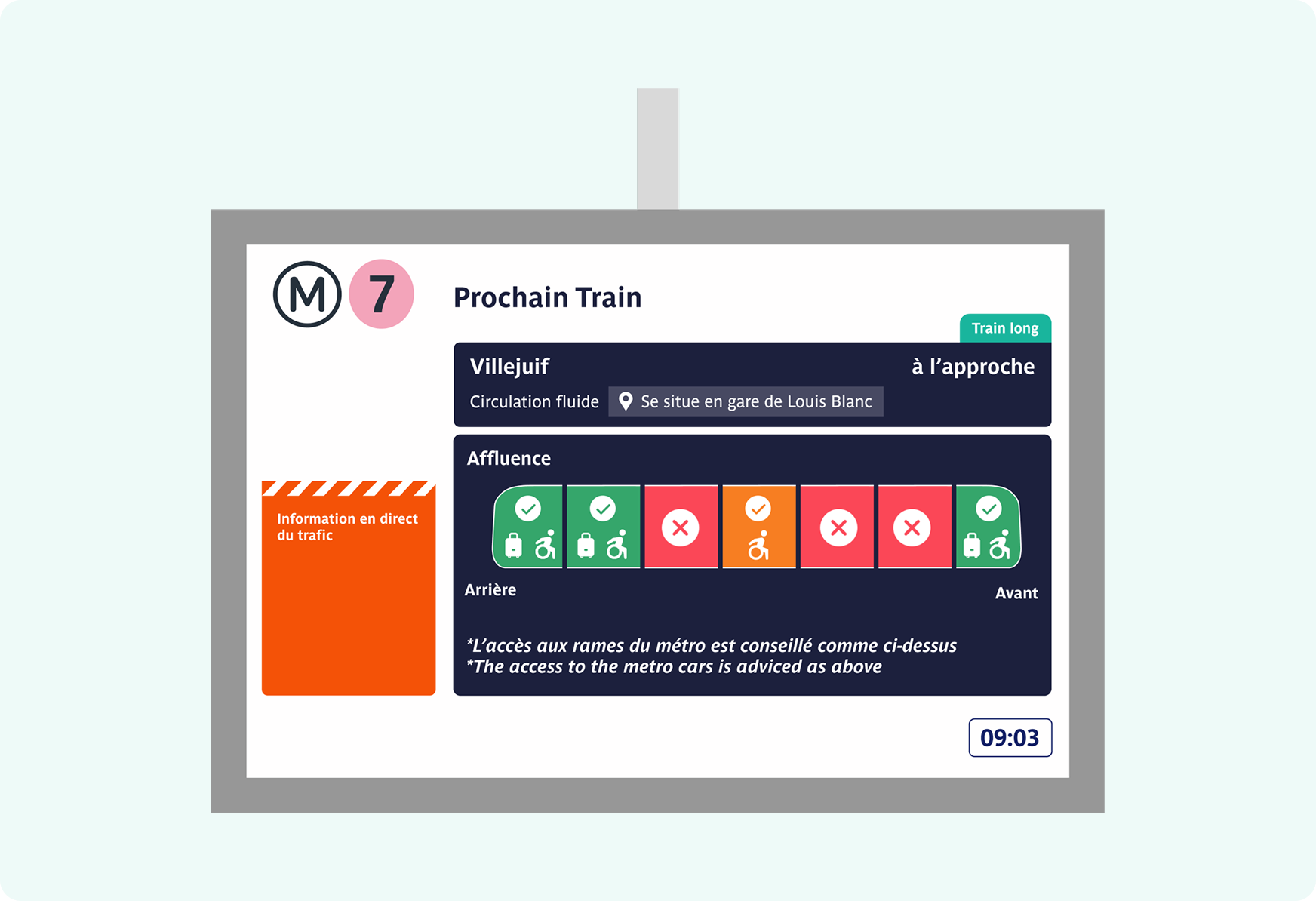 Ce système offre une aide visuelle simple et immédiate, utile aussi bien pour les Parisiens que pour les touristes, en les guidant vers les zones les moins fréquentées pour un trajet plus confortable.